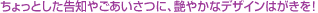 | 和装・きもの(着物)業界に強い弊社が長年培ってきたノウハウにより宣伝効果の高い販促物を厳選・デザインし、美しくフルカラー印刷いたしました。そのアイテム数はDM(ダイレクトメール)・はがき・チラシ・販促品を含めて総計100点以上 ! ! 用途・目的に合ったアイテムをお選びいただけます。 |